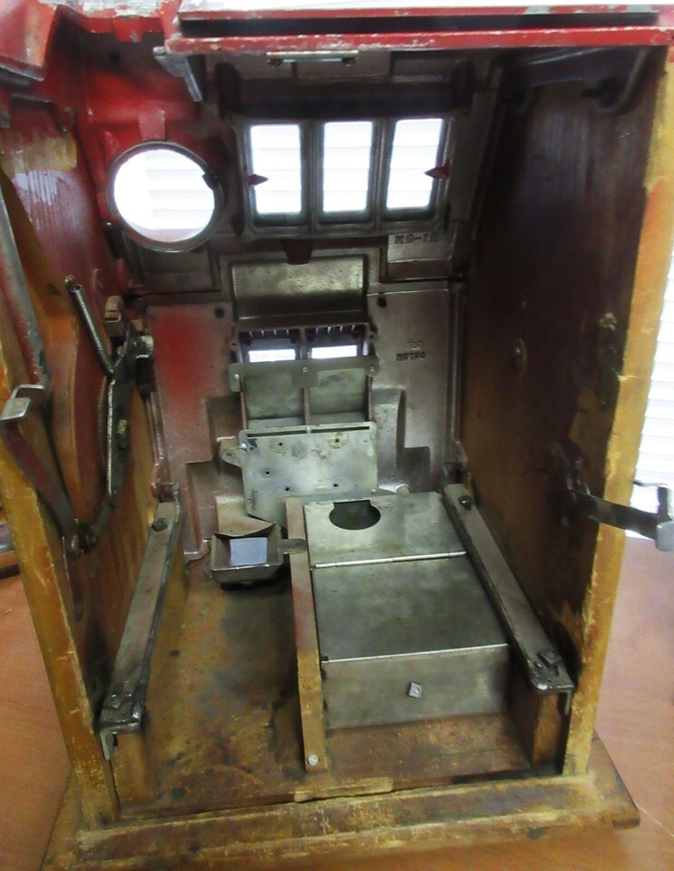 Fully restored to its glory, this slot machine is a standout piece for collectors and enthusiasts alike. Its unique design and the nostalgic vibe it carries make it a focal point in any collection or as a functional piece for casual gaming. Add a touch of history to your home or establishment with this beautifully preserved relic.