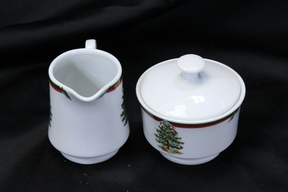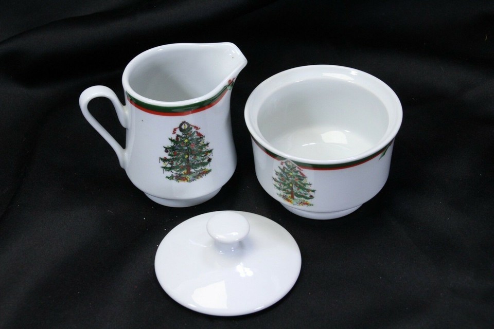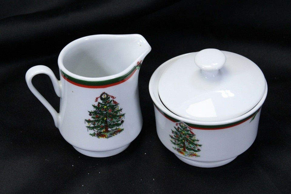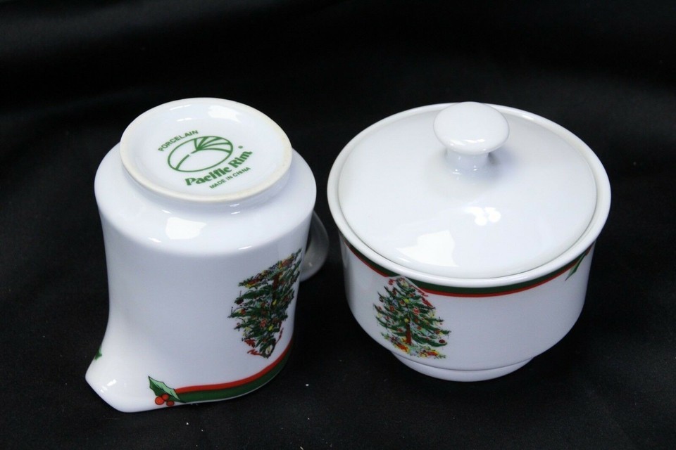 - Pacific Rim Cream and Sugar Bowl w/Lid Christmas Tree Set of 2 Xmas