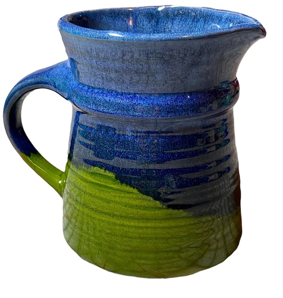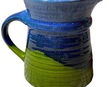 - Pacific Stoneware Pitcher Vase Blue Green Pint Vintage USA Wheel Thrown 4.5”