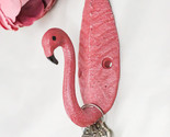 ? This colorful pink flamingo wall hook sculpture is made of cast iron, hand painted and polished individually.