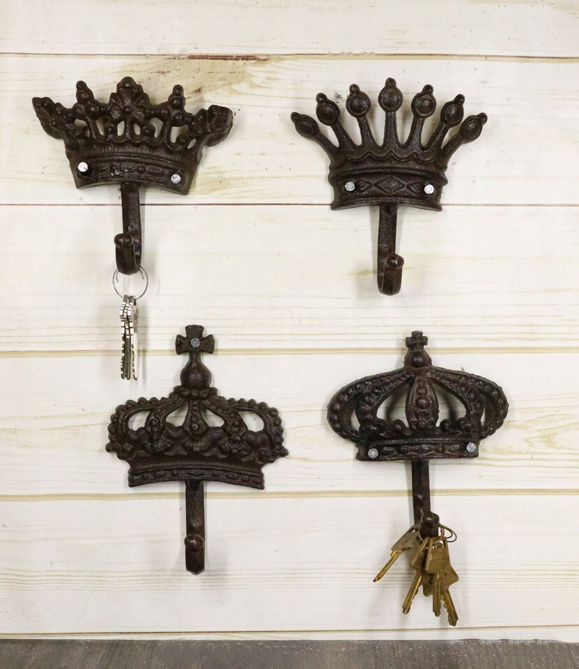 - Pack Of 4 Cast Iron Medieval Royalty King and Queen Crowns Wall Coat Hooks