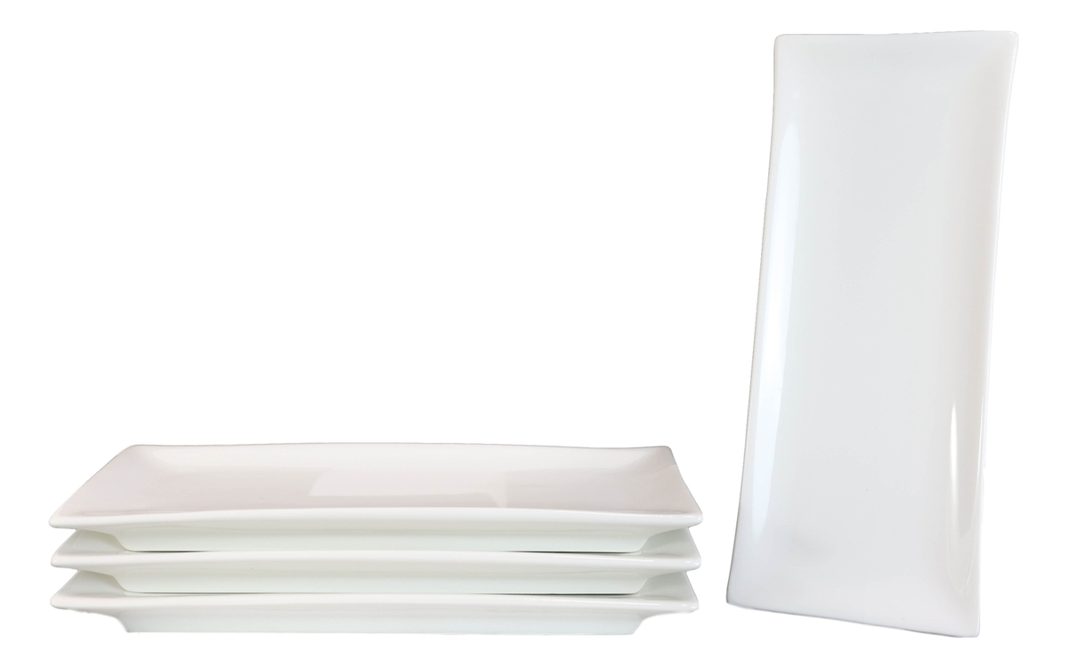 - Pack Of 4 Modern White Porcelain Sushi Appetizer Dessert Platter Plates 10"L