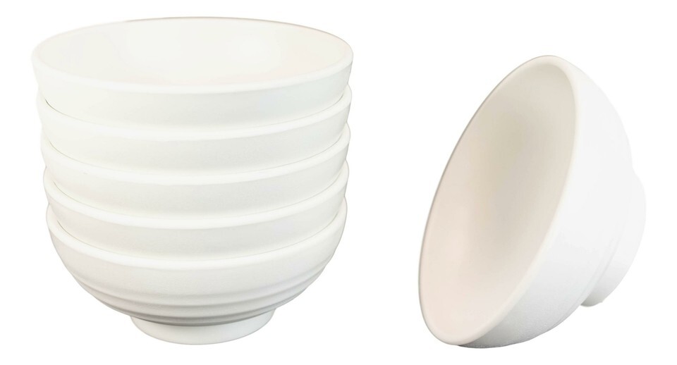 - Pack Of 6 Contemporary Ridged 7.5"D Matte White Melamine Salad Pasta Soup Bowls