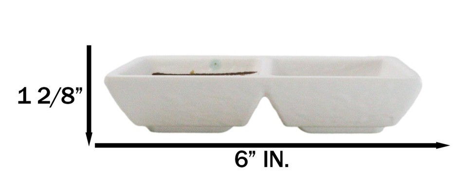 ? This Yukino Hana Snowflakes Melamine Sauce Dishes Set each measures 6" Long, 3" Wide and 1.25" High. Each partition can hold 2 fluid ounces.