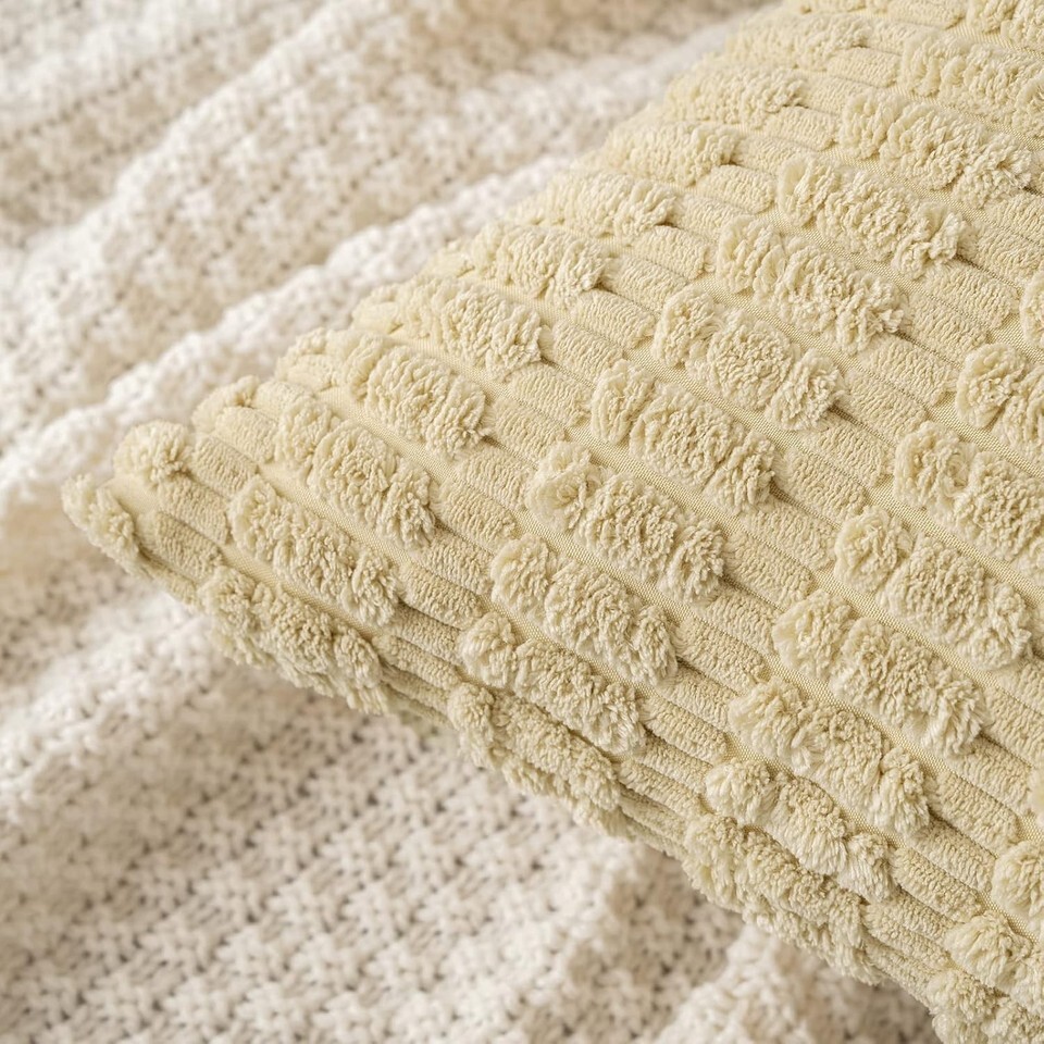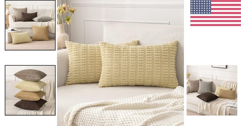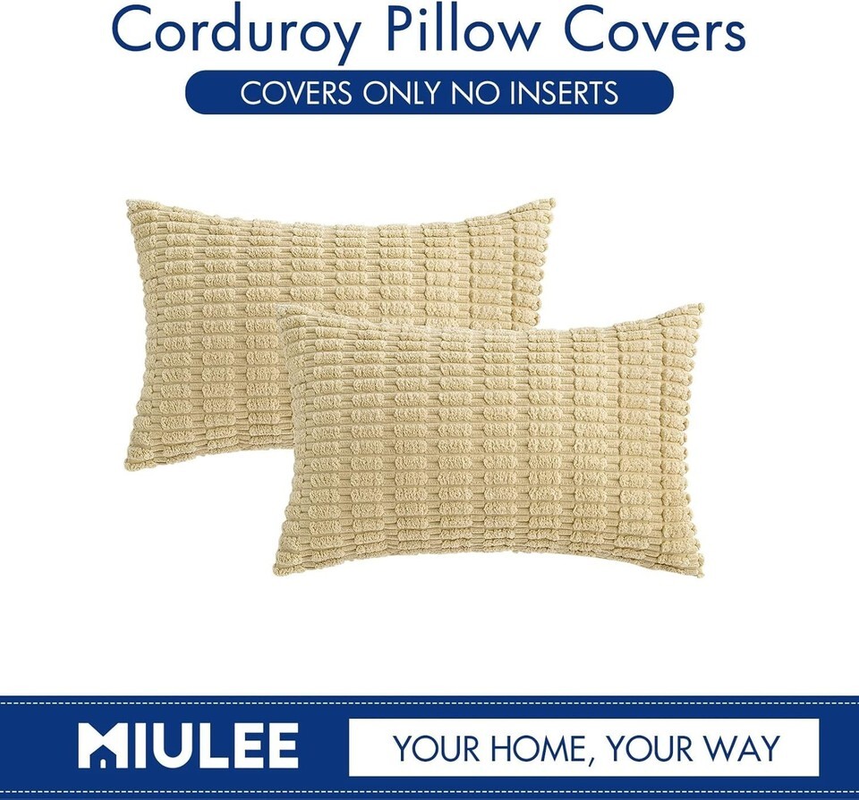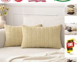 - Pack of 2 Soft Corduroy Striped Lumbar Pillow Covers | 20x12 Inch Beige Elegance