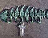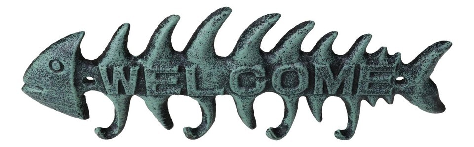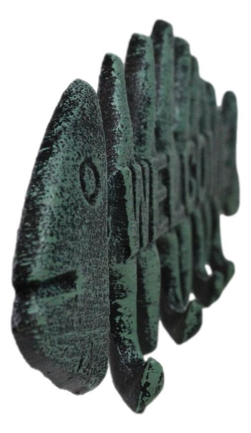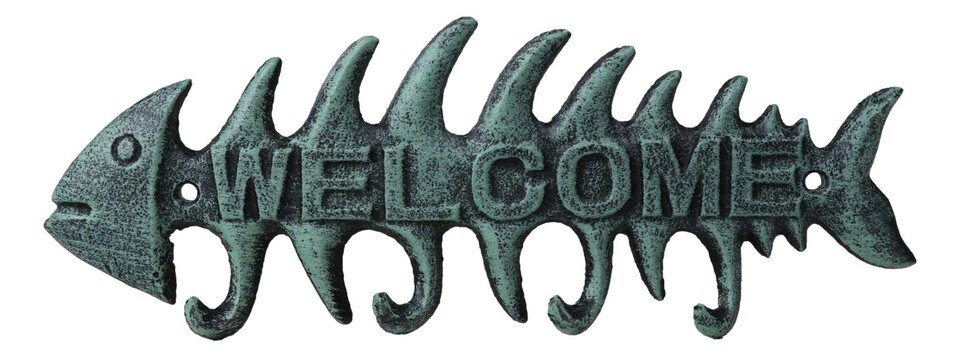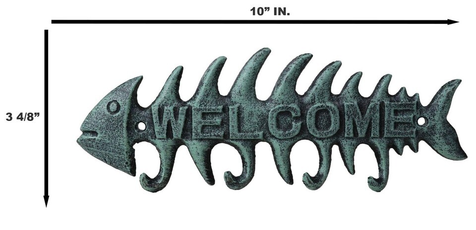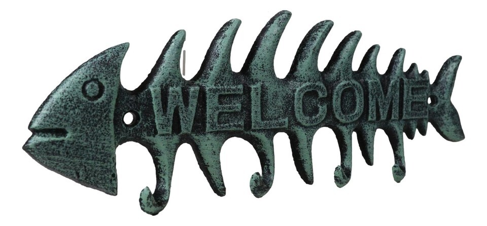 - Pack of 2 Verdigris Cast Iron Fish Bone 4 Peg Wall Hooks Welcome Sign Plaque