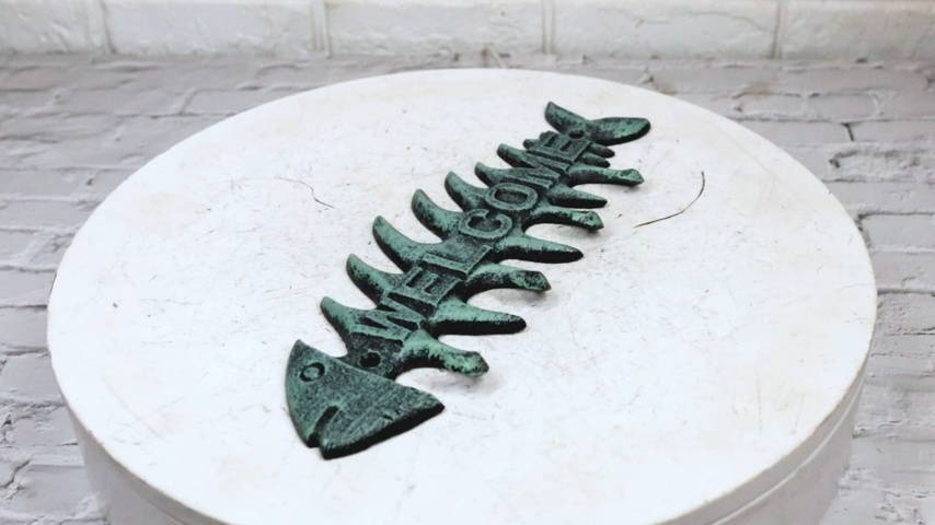 ? Introducing the Fishbone Quadruple Wall Hook And Welcome Sign is made of cast iron, finished in rustic vintage verdigris appearance. The fishbone is a 4-peg wall hook that allows you multiple spots for hanging your articles.