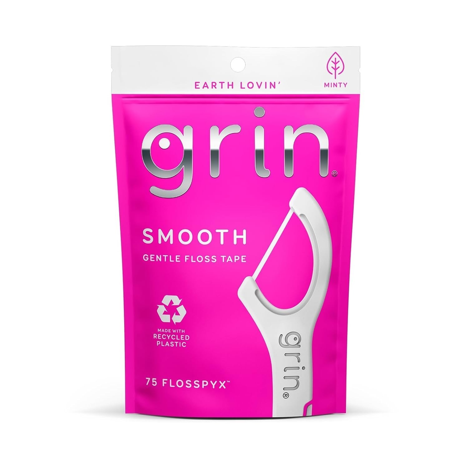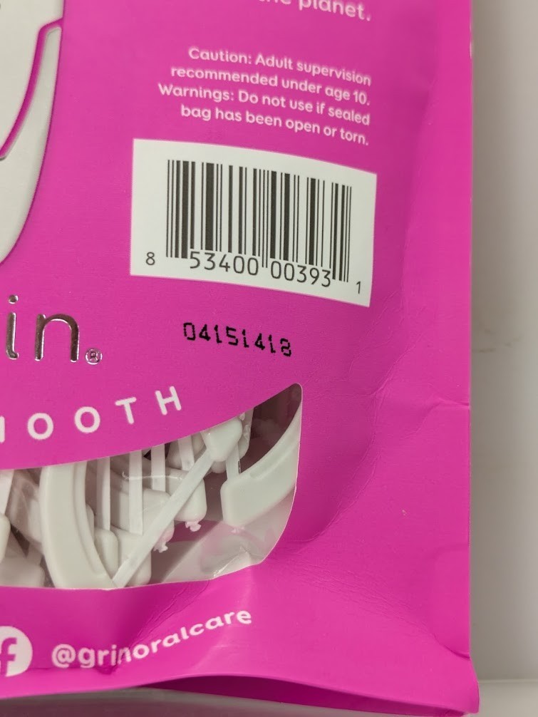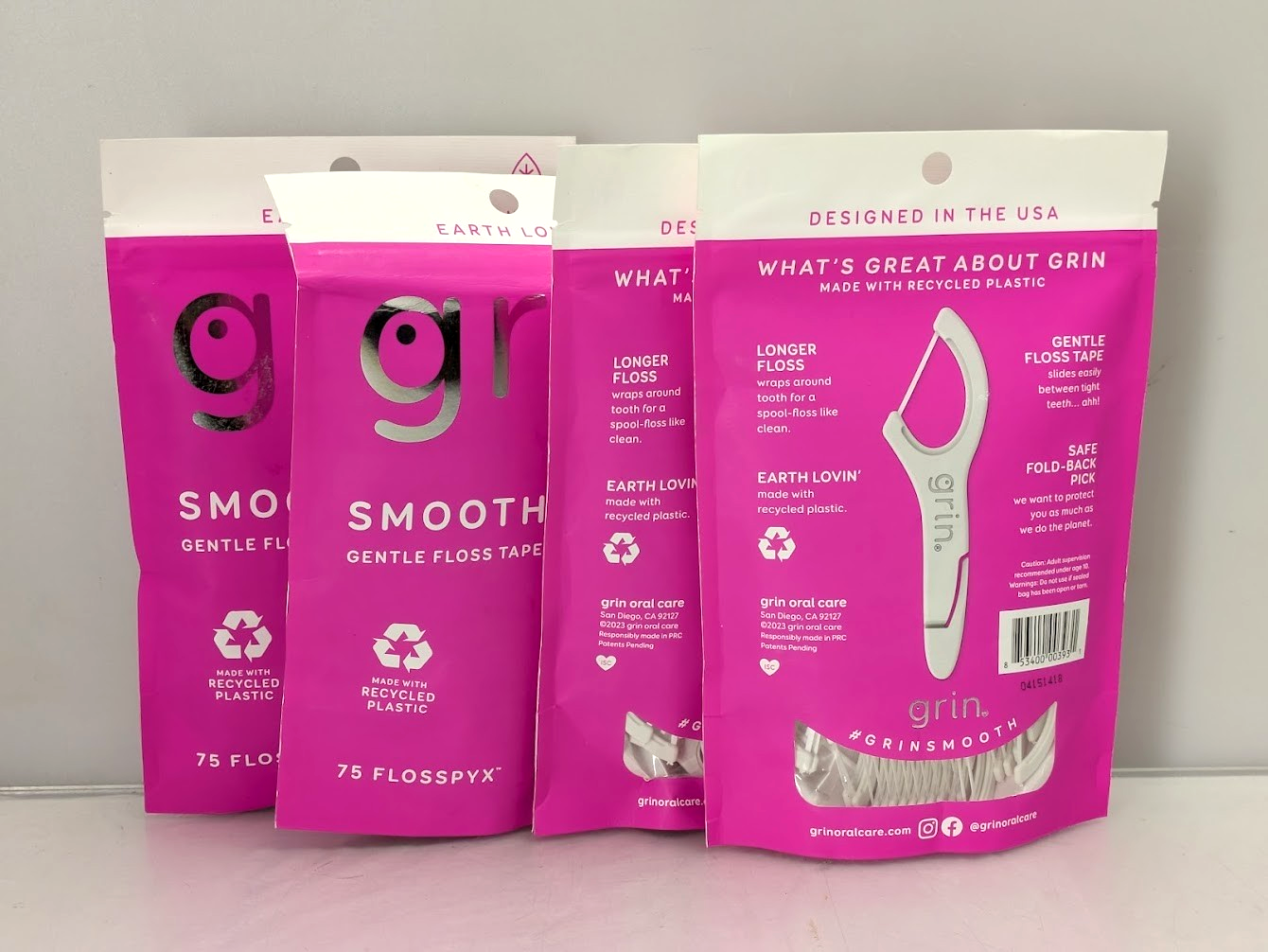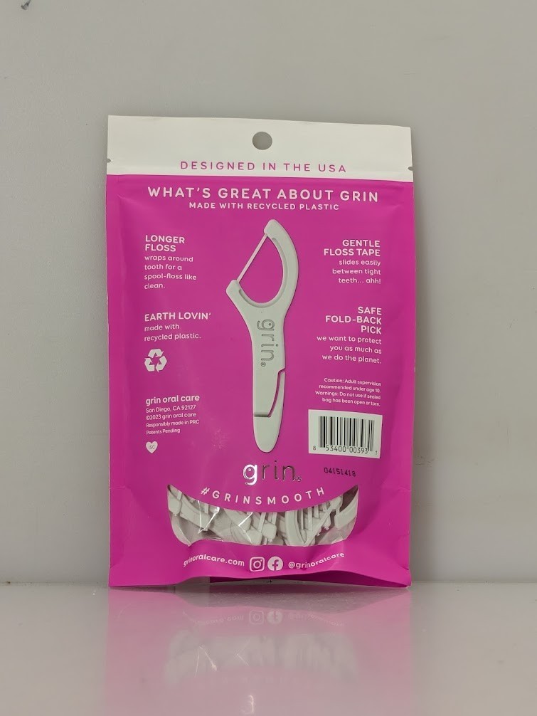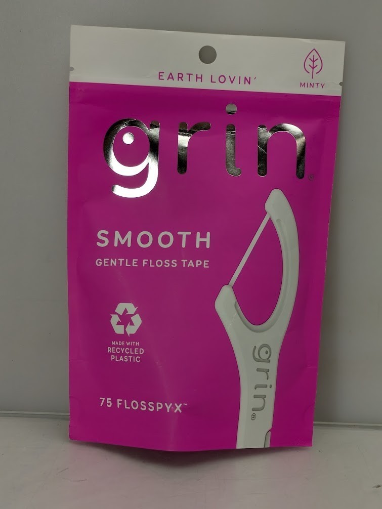 - Pack of 4 Grin Oral Care Smooth Floss Gentle Dental Floss Tape Picks 75/Pack