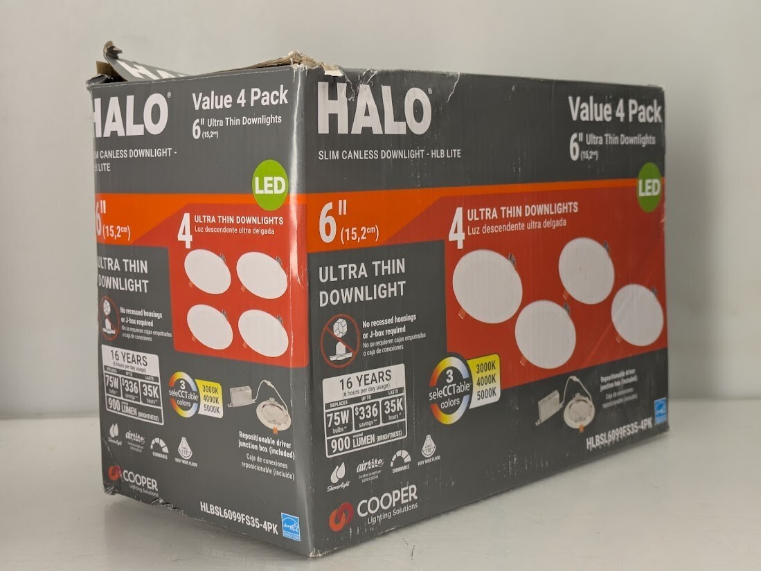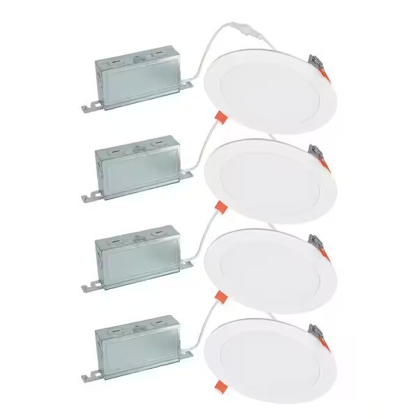 - Pack of 4 Halo 6" Ultra Thin Led Downlights Direct Mount Can Less Integrated