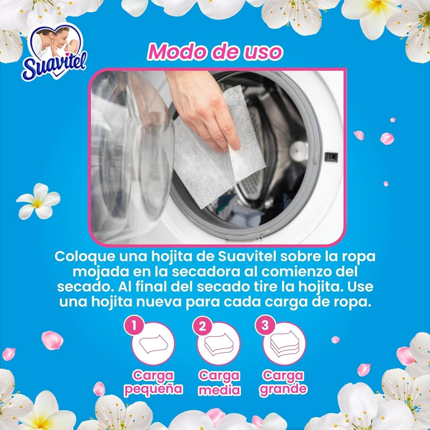Suavitel Dryer Sheets Field Flowers: Delightful Field Flowers scent. Long-lasting freshness: Suavitel dryer sheets provide long-lasting freshness to your laundry, leaving it smelling clean and inviting. Softens and reduces static cling