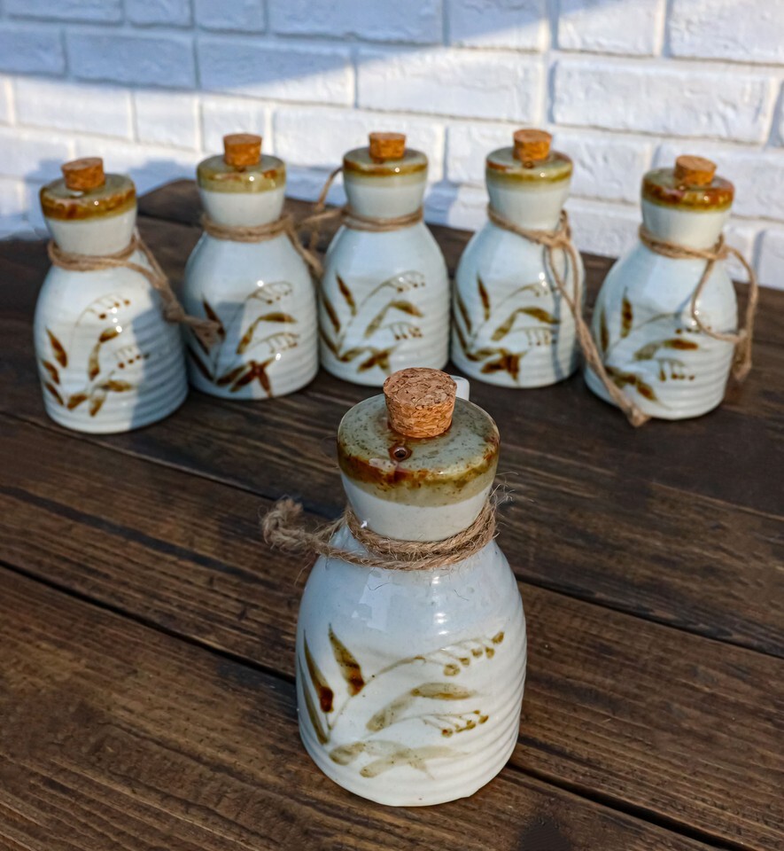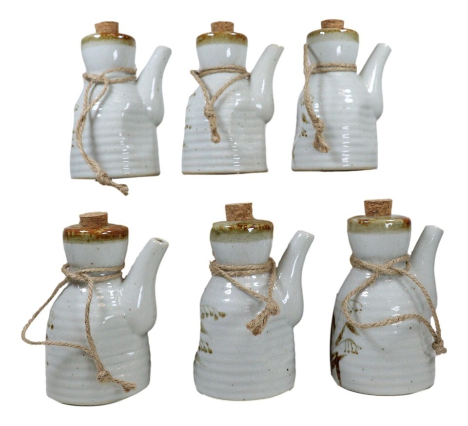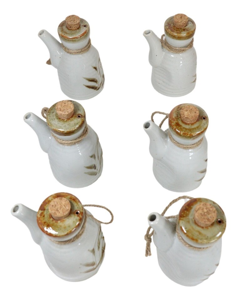 - Pack of 6 Porcelain White Brown Reed Soy Sauce Vinegar Oil Dispenser Flask 7oz