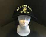 - PADDED SATIN STITCH US MARINE CORPS VETERAN W/ EMBLEM BLACK STRAPBACK CAP HAT