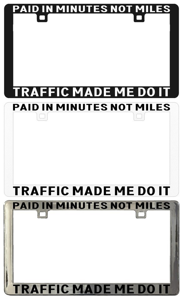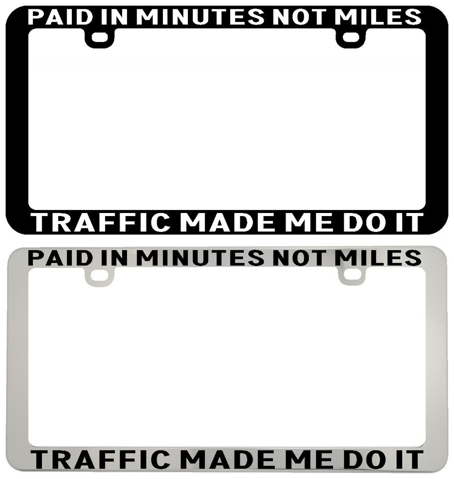- PAID IN MINUTES NOT MILES TRAFFIC MADE ME DO IT. License Plate Frame