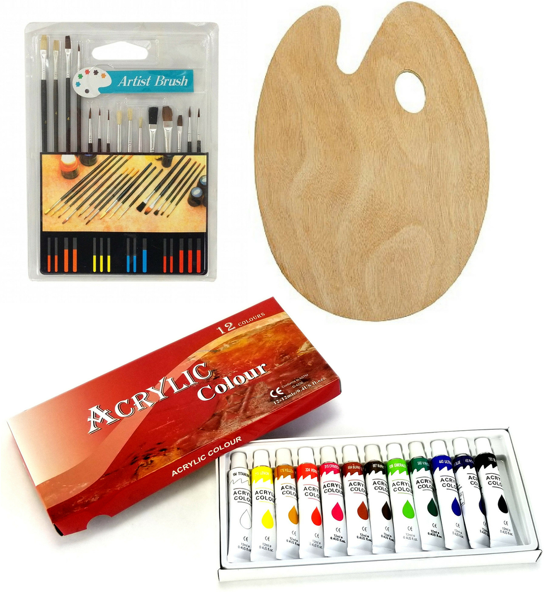 - Painting Starter Kit 12 Color Acrylic Paints, 15 Brushes w/ Wood Painter Palette