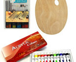 Painting Starter Kit 12 Color Acrylic Paints, 15 Brushes w/ Wood Painter Palette