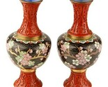 PAIR OF ANTIQUE VINTAGE ASIAN CINNABAR AND CLOISONNE VASES CHERRY BLOSSOM