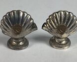 Pair Of Balboa, California Silver Plated Shell Salt Pepper Shakers. These are in fair condition. Selling as is. They have marks throughout and could use a good cleaning and polishing. These measure 2x1.25x2?.