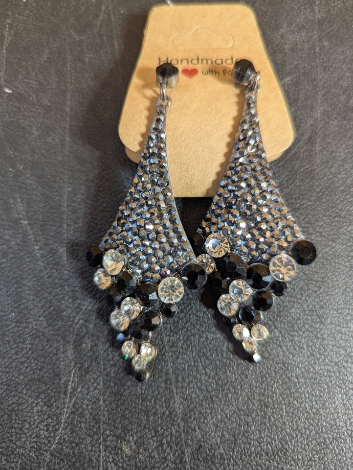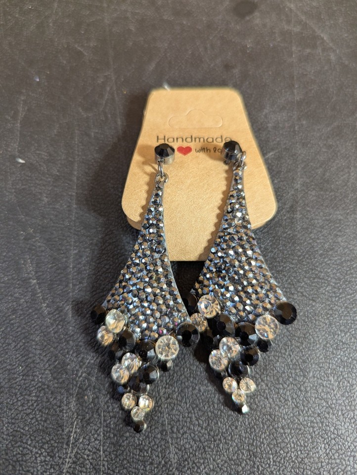 This pair of unbranded rhinestone earrings features teardrop-shaped stones in multicolor, making them a stylish and eye-catching accessory. The earrings are designed with a threader closure for easy wear on the earlobe. The dangle/drop style adds movement and glamour to any outfit, making them versatile for both casual and formal occasions. These earrings are a perfect addition to any jewelry collection for those who appreciate sparkle and elegance.
