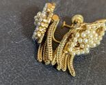 Pair Of Vintage Grand Trifari Gold Tone And Faux Pearl Screw Back Earrings