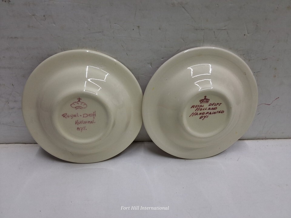 PAIR RED DELFT MINI BOWL ASHTRAY REGINA ROOD SALTS. Set of two. Hand painted in Holland.
