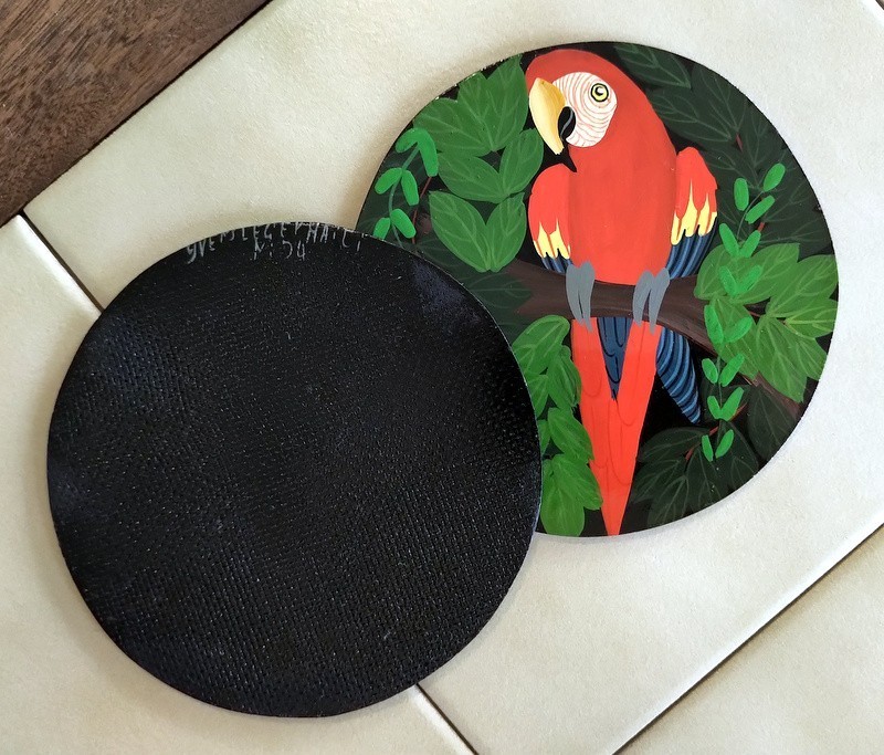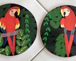 - Pair of Hand Painted Tropical Red Parrot Drink Coasters (4.75" diameter) Haiti