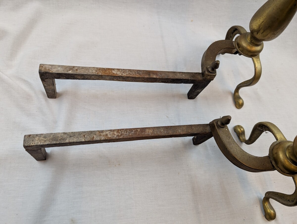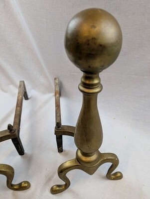Pair of Vintage Brass & Cast Iron Ball Top Fireplace Andirons