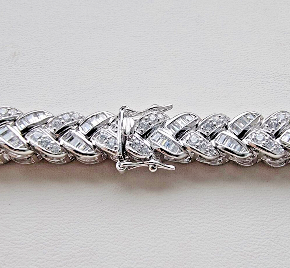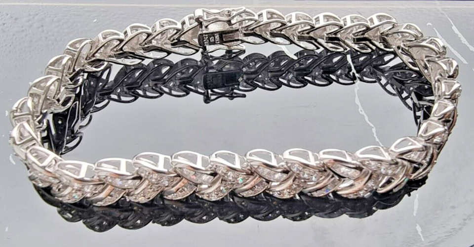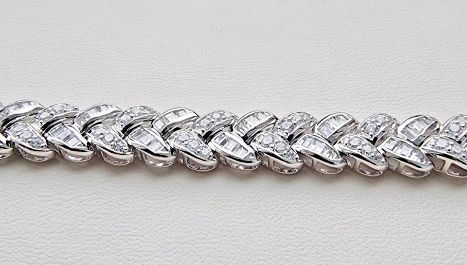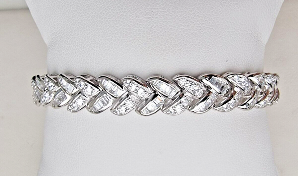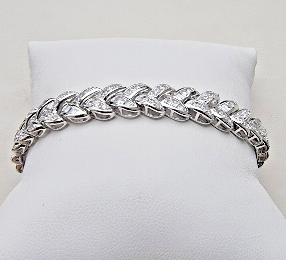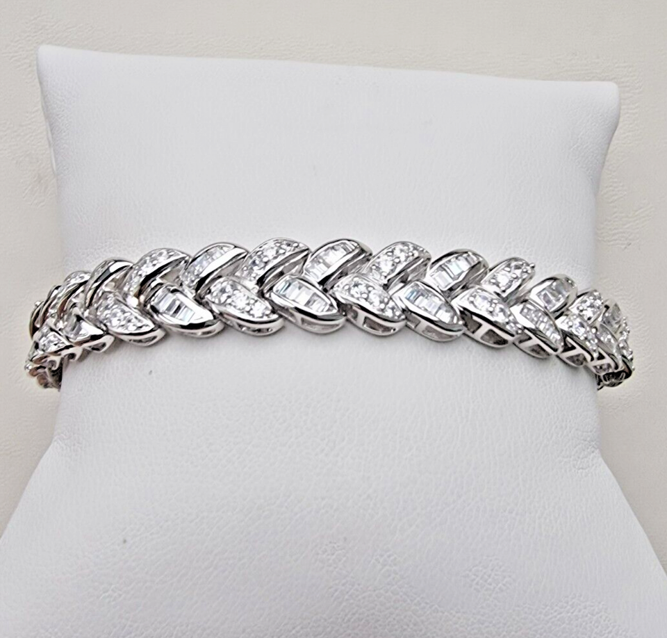 - PAJ 925 STERLING SILVER SPARKLING GEMSTONE WHEAT DESIGN TENNIS BRACELET 7.5"