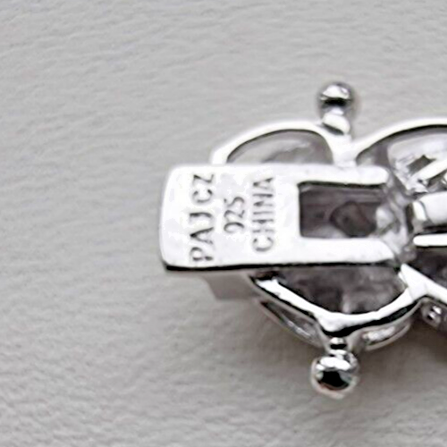 This PAJ 925 Sterling Silver Tennis Bracelet features a sparkling lab-created gemstone in a channel-set wheat design. The bracelet is crafted from sterling silver and signed by the brand. The color of the gemstone is white/colorless, adding a touch of beauty to the piece. Made in China, this elegant bracelet is a fine piece of jewelry suitable for various occasions.