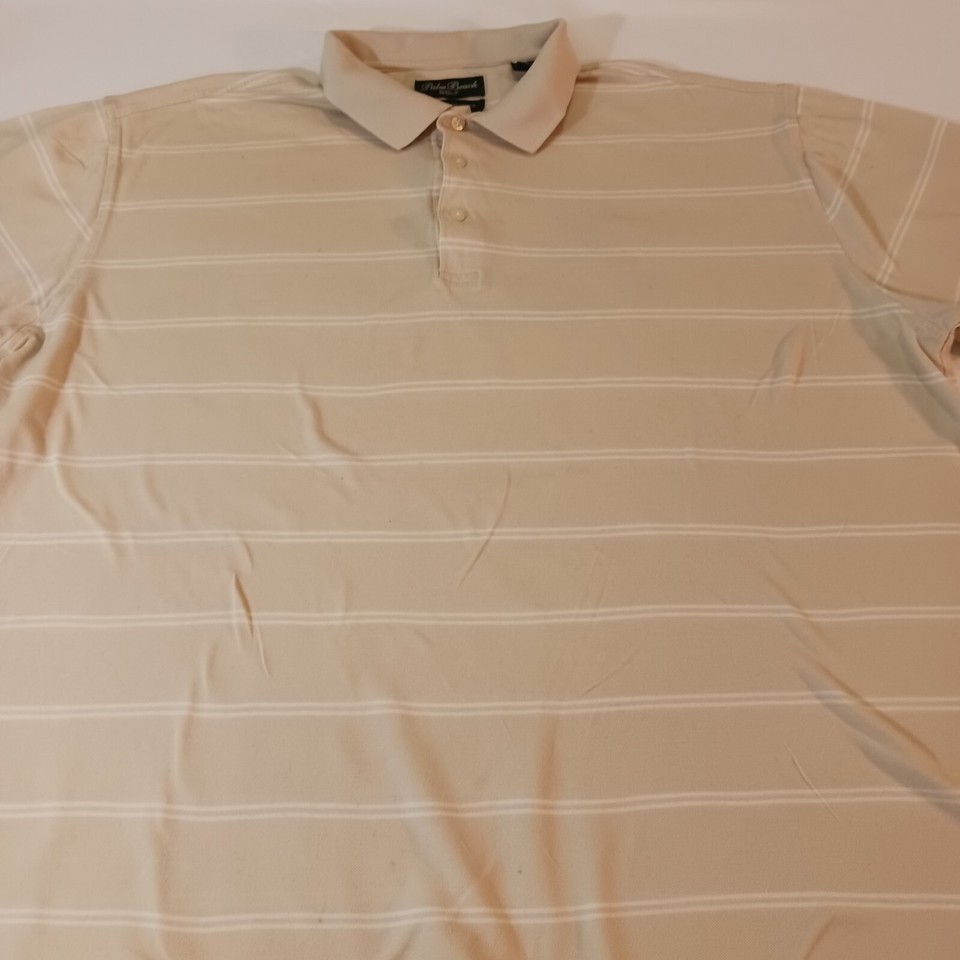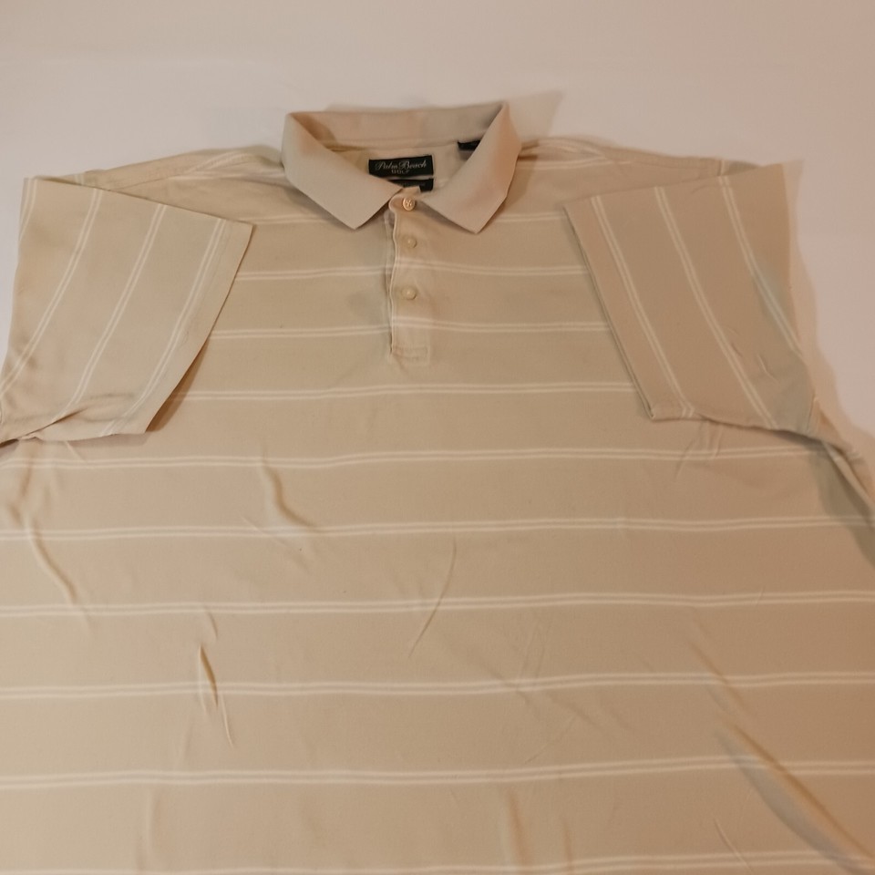 - Palm Beach Golf Mens Polo Shirt Beige Striped Short Sleeve Mercerized Cotton 2XL