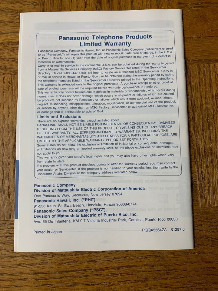 - Panasonic Cordlessphone Product Manual KX-T3880