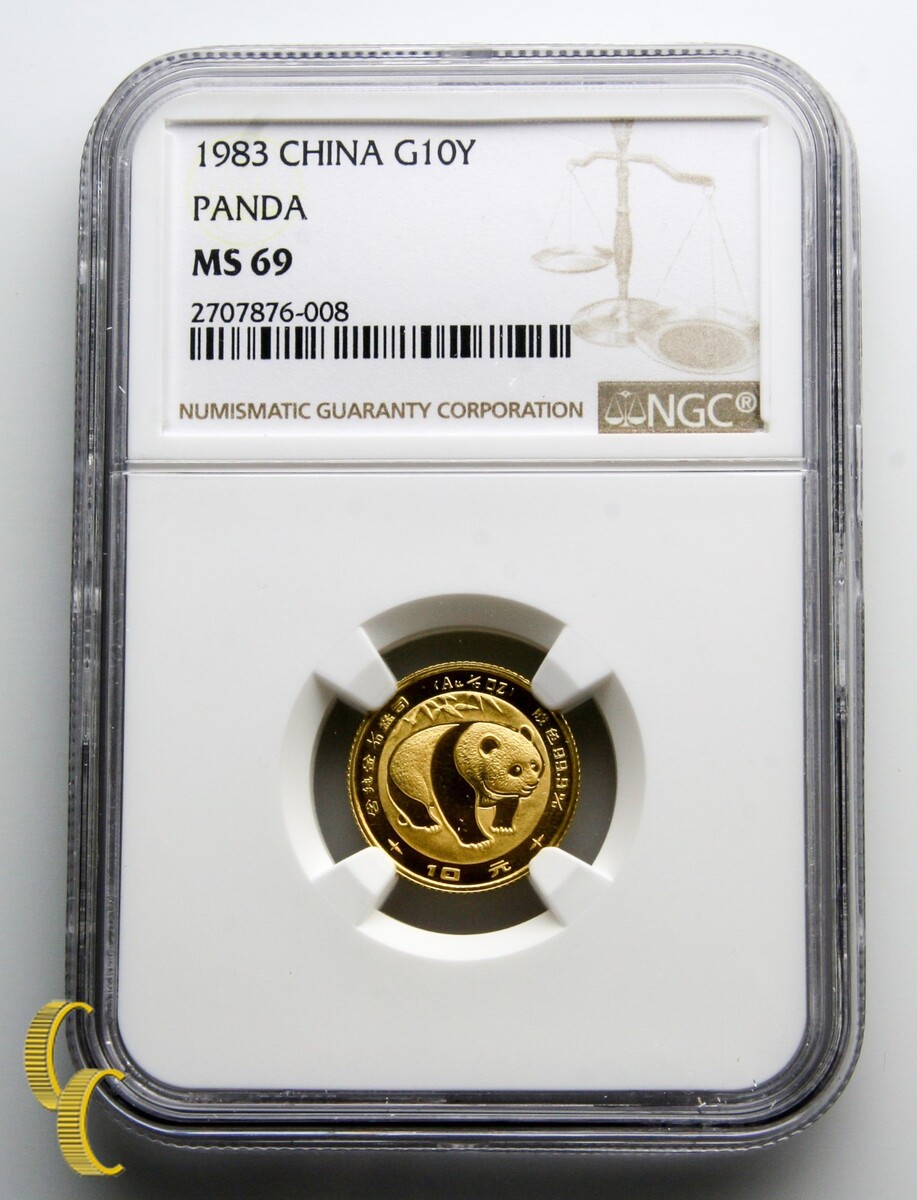 - Panda Cinese D'Oro 1983 1/10 Oz 10 Yuan Graded Da NGC MS 69