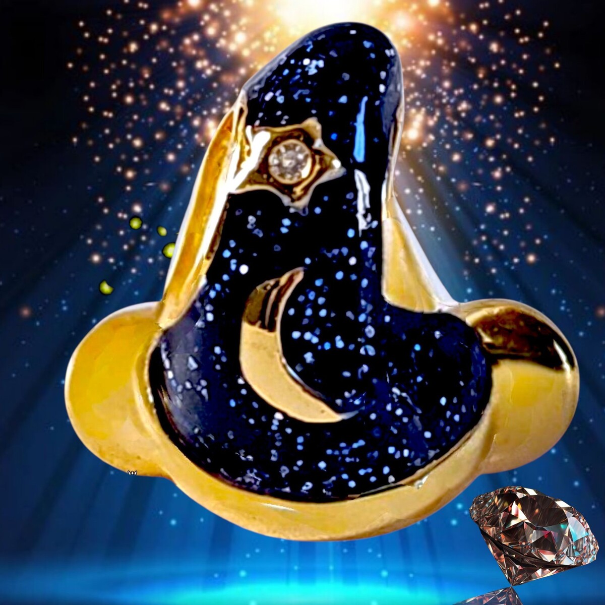 The PANDORA 14K Disney Mickey Mouse Sorcerer's Hat Charm 764207C01 is a stunning piece of jewelry featuring a Disney Mickey Mouse Sorcerer's Hat design in 14k yellow gold plated with a lab-created white/colorless diamond as the main stone. This slide closure charm is from the PANDORA brand and comes with a seller warranty, making it a trusted and authentic purchase. With a vintage Disney theme, this charm is a perfect addition to any bracelet or charm collection for fans of both Disney and Pandora jewelry.