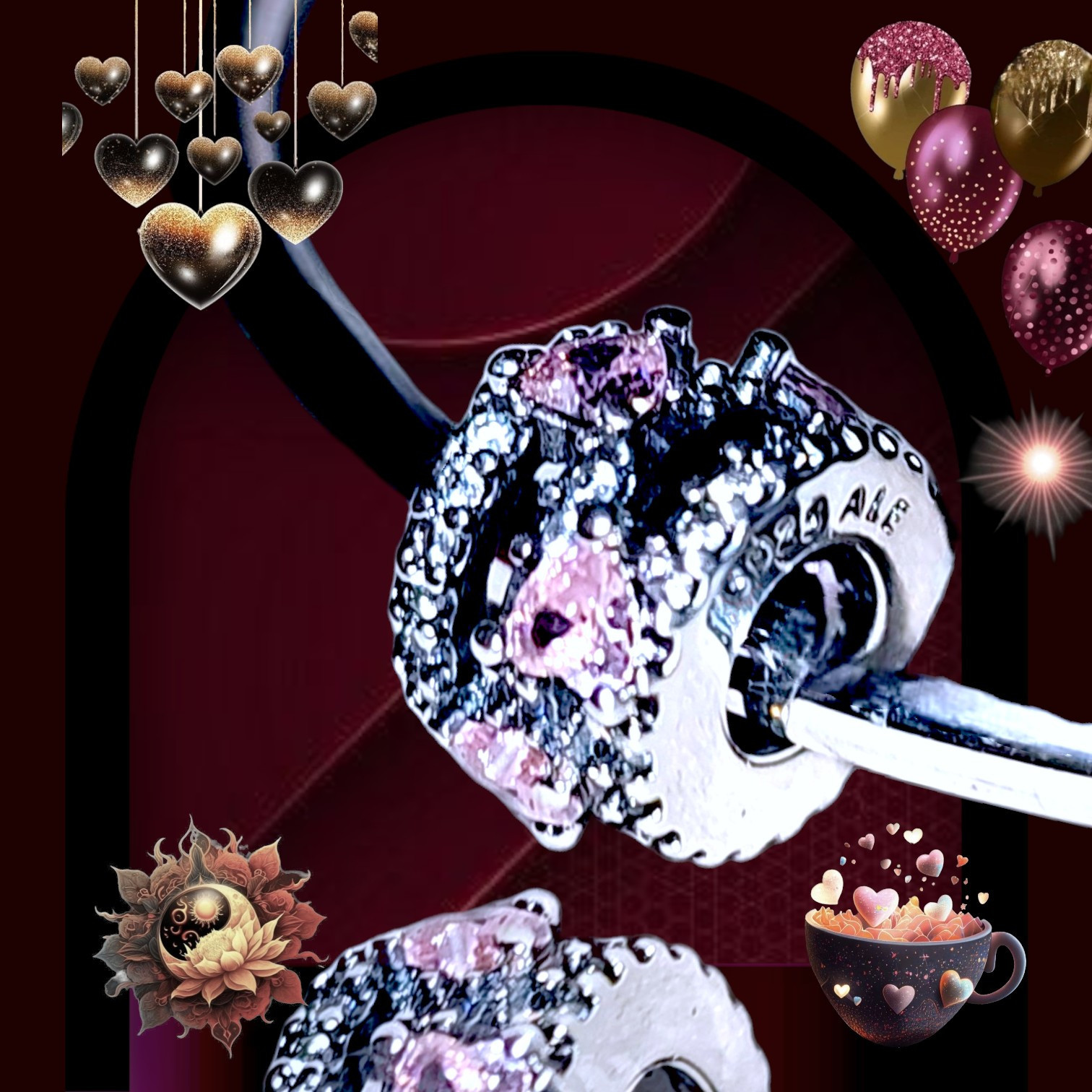 - PANDORA SPARKLING TRIPLE HALO HEARTS CHARM 791161C01 US SELLER