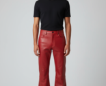 - Pantalón de piel de cordero para hombre de cuero rojo oscuro genuino puro aju...