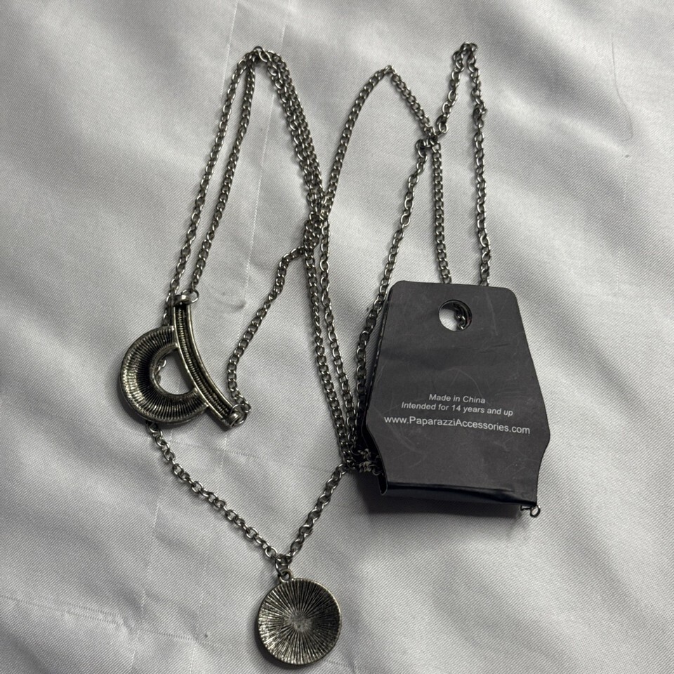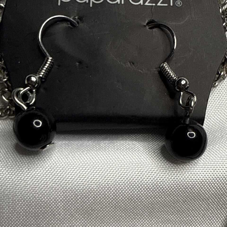 - Paparazzi Jewry Earrings & Necklace Set Necklace Silver Tone w/ Black