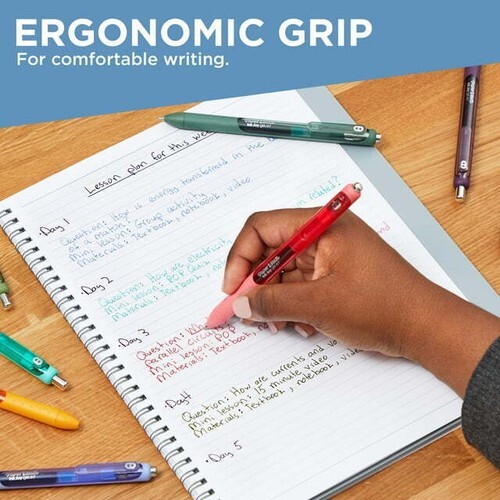 Spread joy (not smears) with Paper Mate InkJoy Gel Pens. With vivid gel ink that dries 3X faster* for reduced smearing, it's like a party on the page where smudges aren't invited. Brilliant color ensures your writing will be bright and filled with fun. Fully wrapped with a comfort grip, Paper Mate InkJoy pens have a smooth style that keeps the joy flowing as fast as your thoughts. And with 30 vibrant colors, you'll never be at a loss for words. *vs Pilot G2 based on average dry times of black, blue, red, and green. Individual dry times may vary by color.