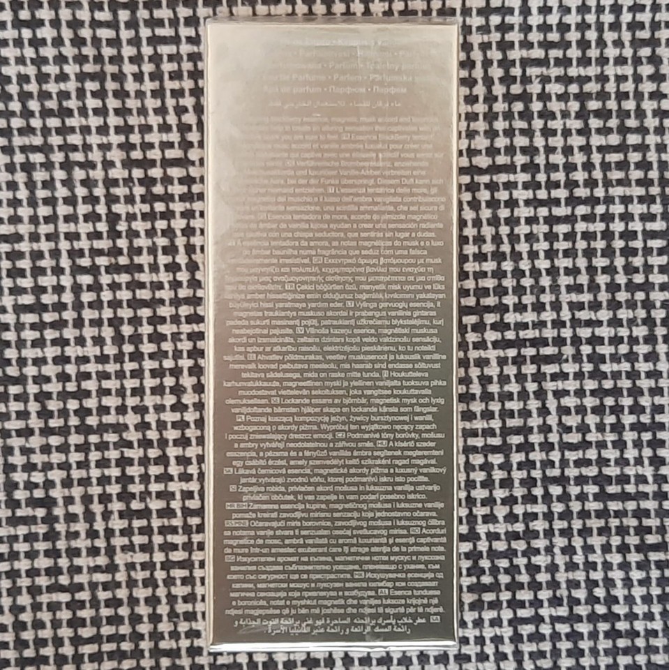 Aroma duradero con tentadora mora, almizcle magnetico y ambar vainilla. Fragancia floral amaderada y almizclada para mujeres lanzada en 2015. Notas de fragancia: Jazmín, orquídea negra, almizcle, ambar, vainilla de Madagascar, pera, mora, pimienta rosa.
