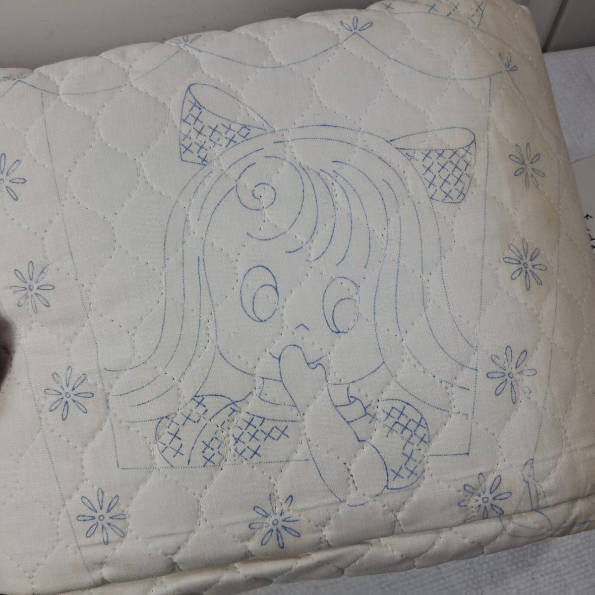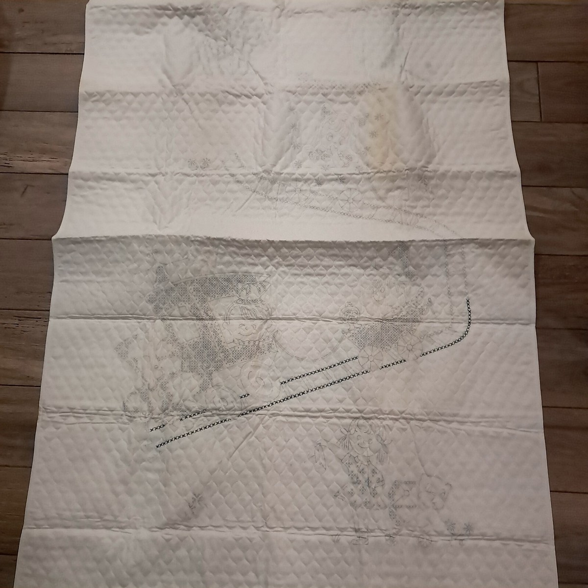 Some discoloration/yellowing as shown. Stitching has been started as shown. Includes thread but not sure if it is all there. See pics.