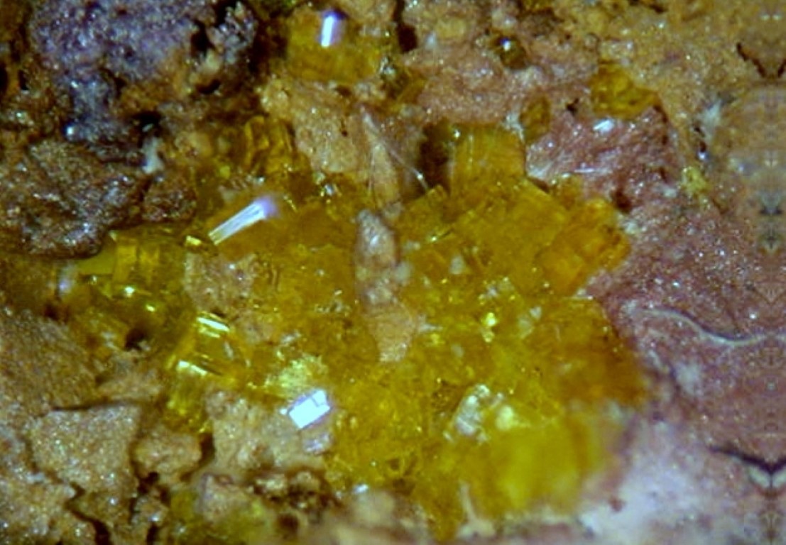 Beautiful microcrystals of parauranophane, formerly known as betauranophane, from the Margaritas mine.