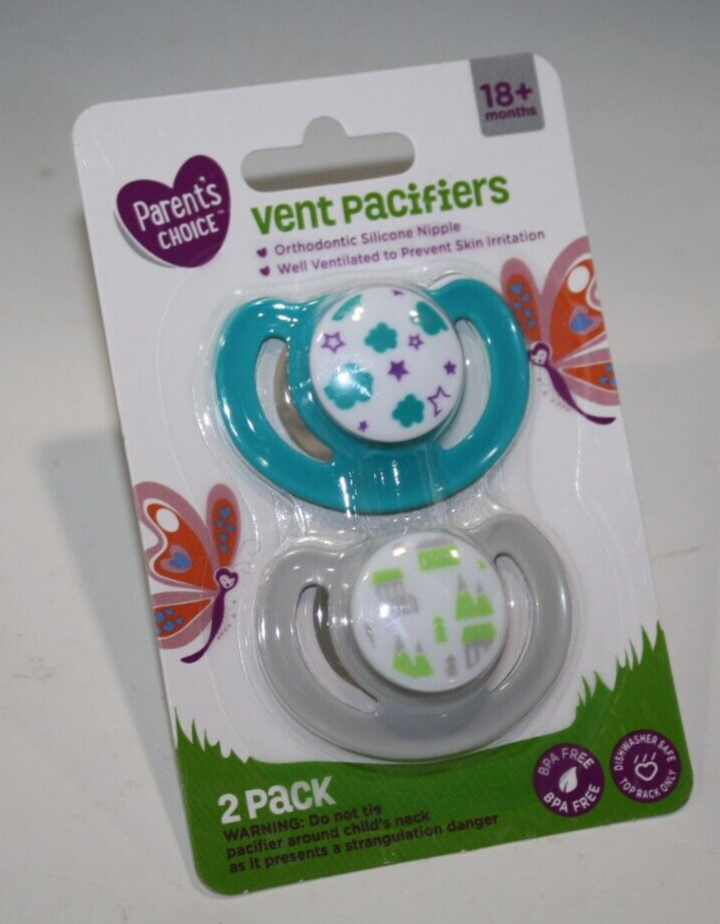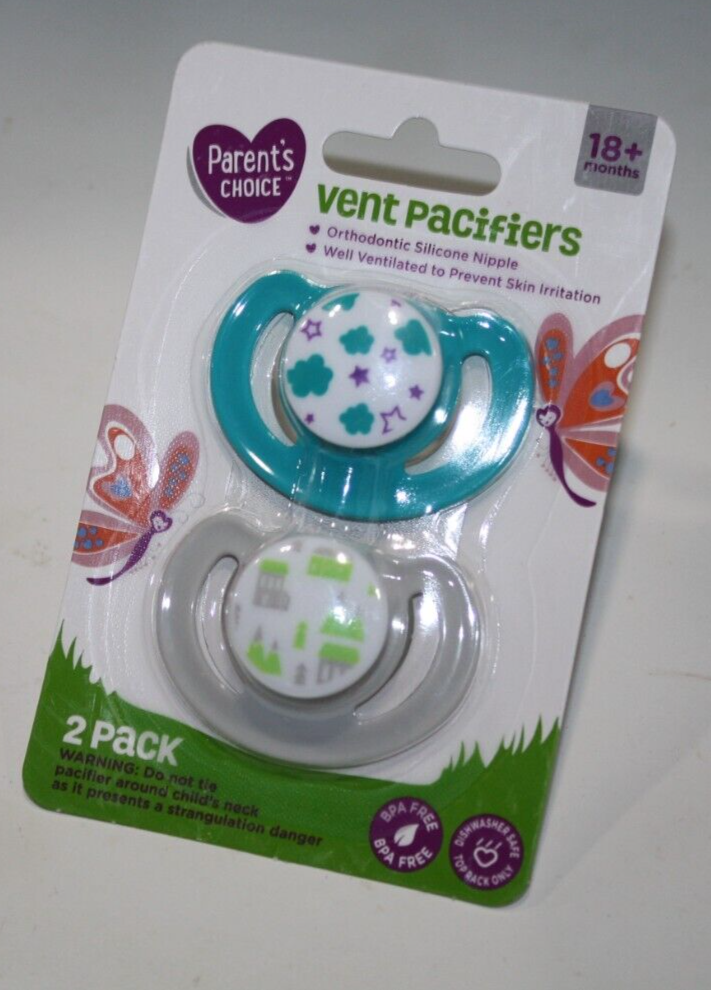 - Parents Choice Vent Orthodontic Silicone Pacifiers 2-Pack 18+ Months BPA FREE