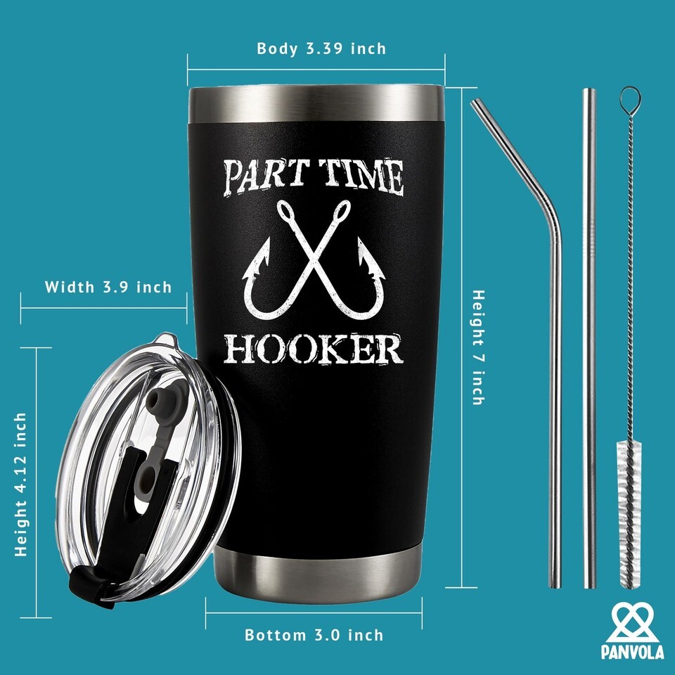 Ultimate Gift That Stands Out From the Rest: Do you dream of casting a line into the water and reeling in the big one? Then the Part Time Hooker Tumbler is perfect for you! Whether you're sipping coffee at your desk or savoring a beer by the lake, this mug is the ultimate way to show off your love of fishing. So go ahead, take a sip, and dream of the open water!