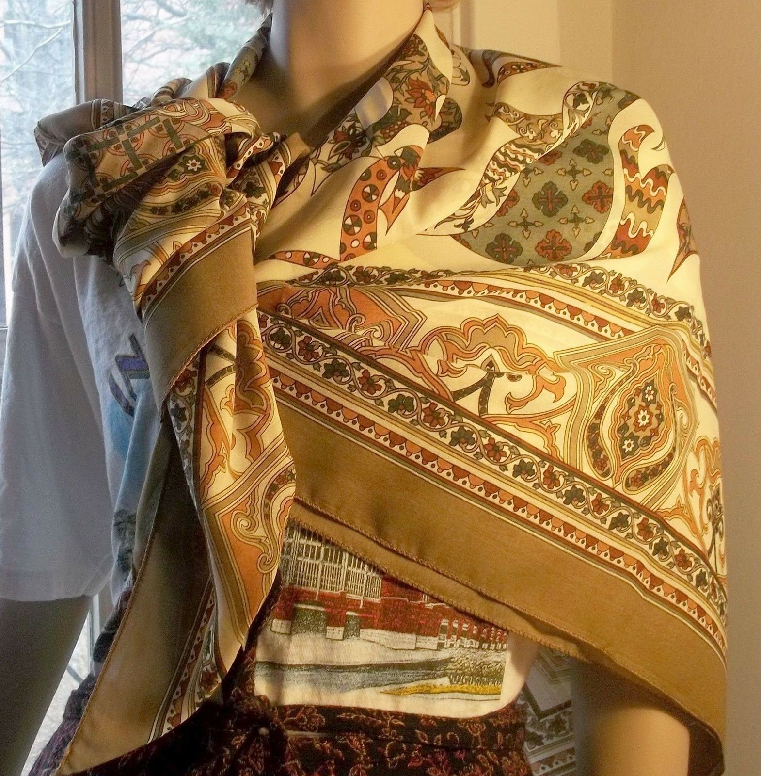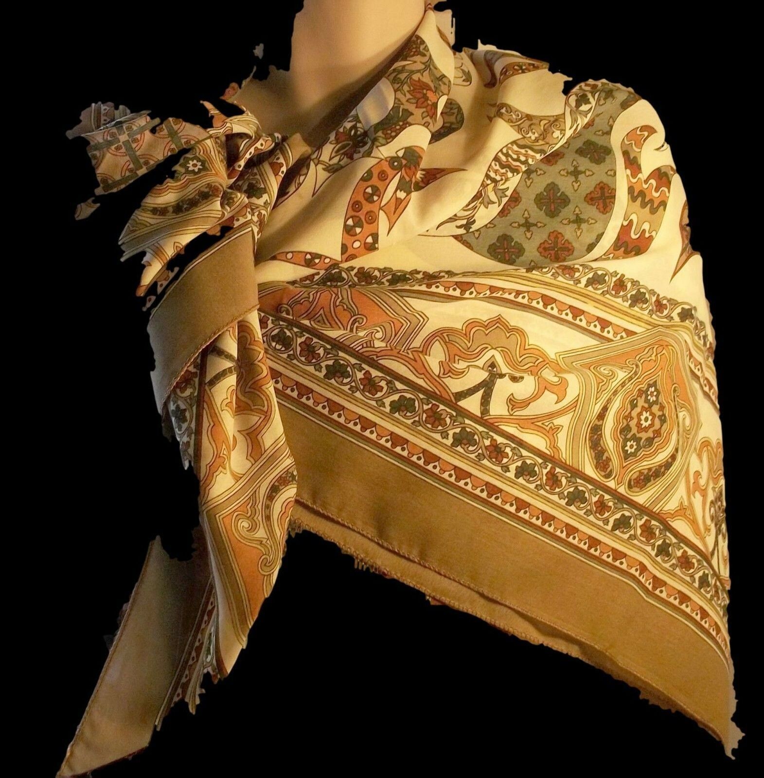 - Pashmina Silk Stole Wrap 47 Inches Paisley Browns Greens