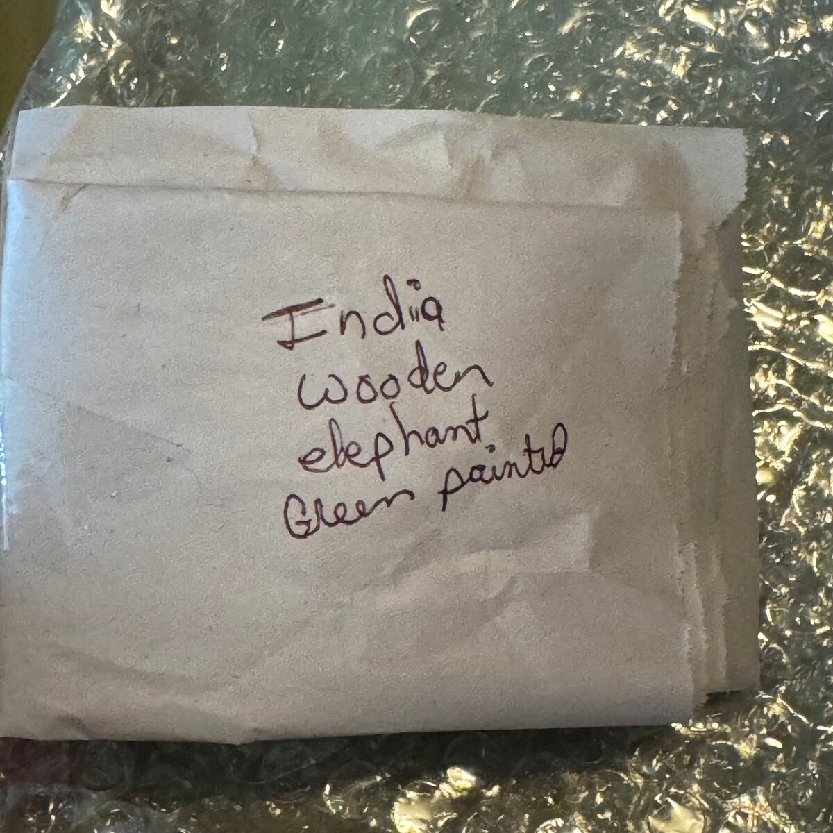 Keywords: Passage to India, elephant figurine, wood carving, hand painted, Indian decor, animal figurine, green elephant, collectible, home accent, desk decor, shelf decor, tabletop decor, boho decor, ethnic decor, unique gift