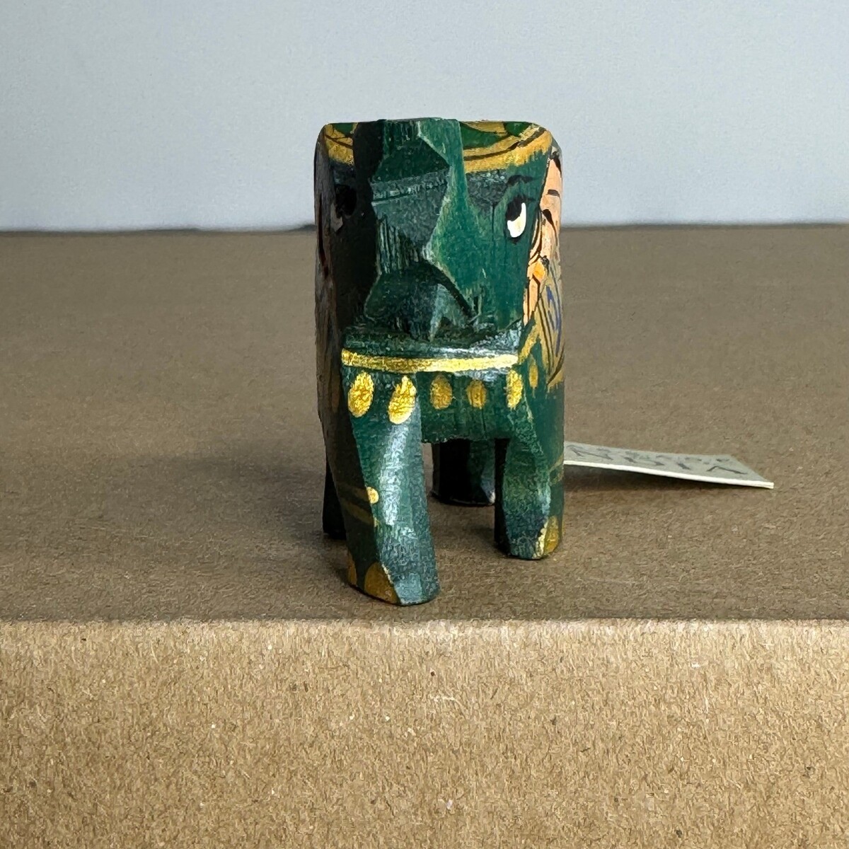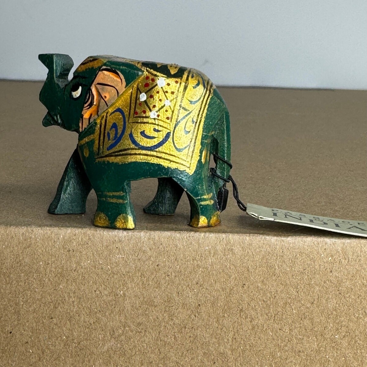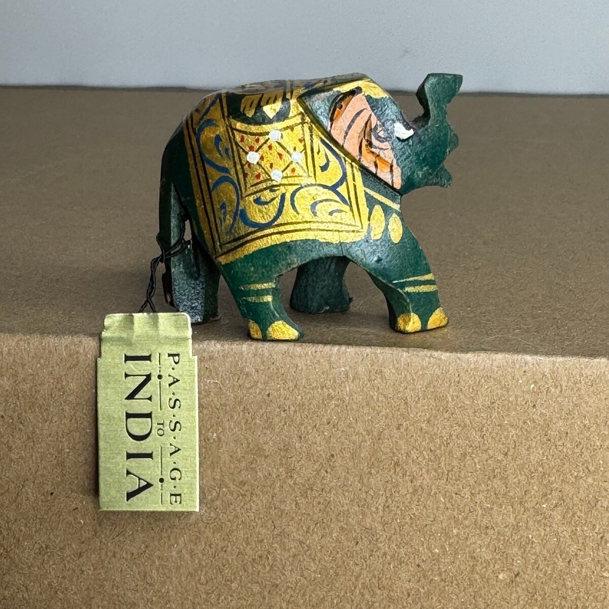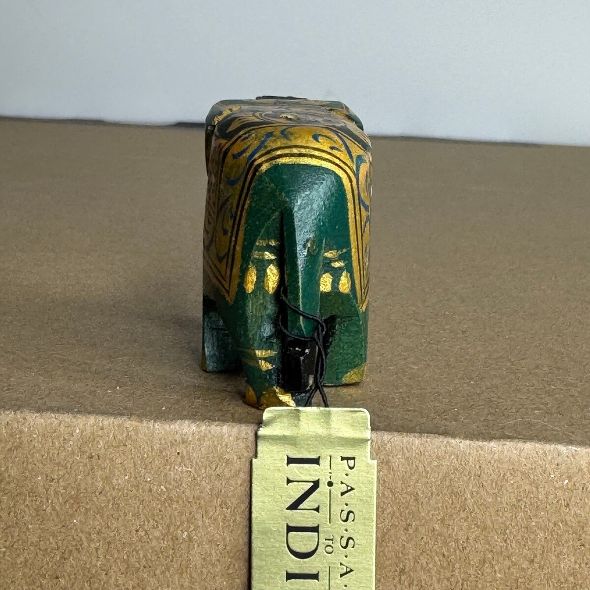 - Passage to India Hand Painted Green Elephant Figurine Wood Carving