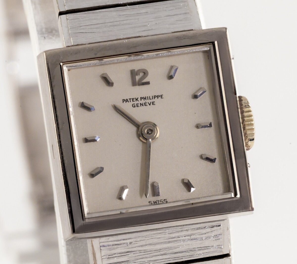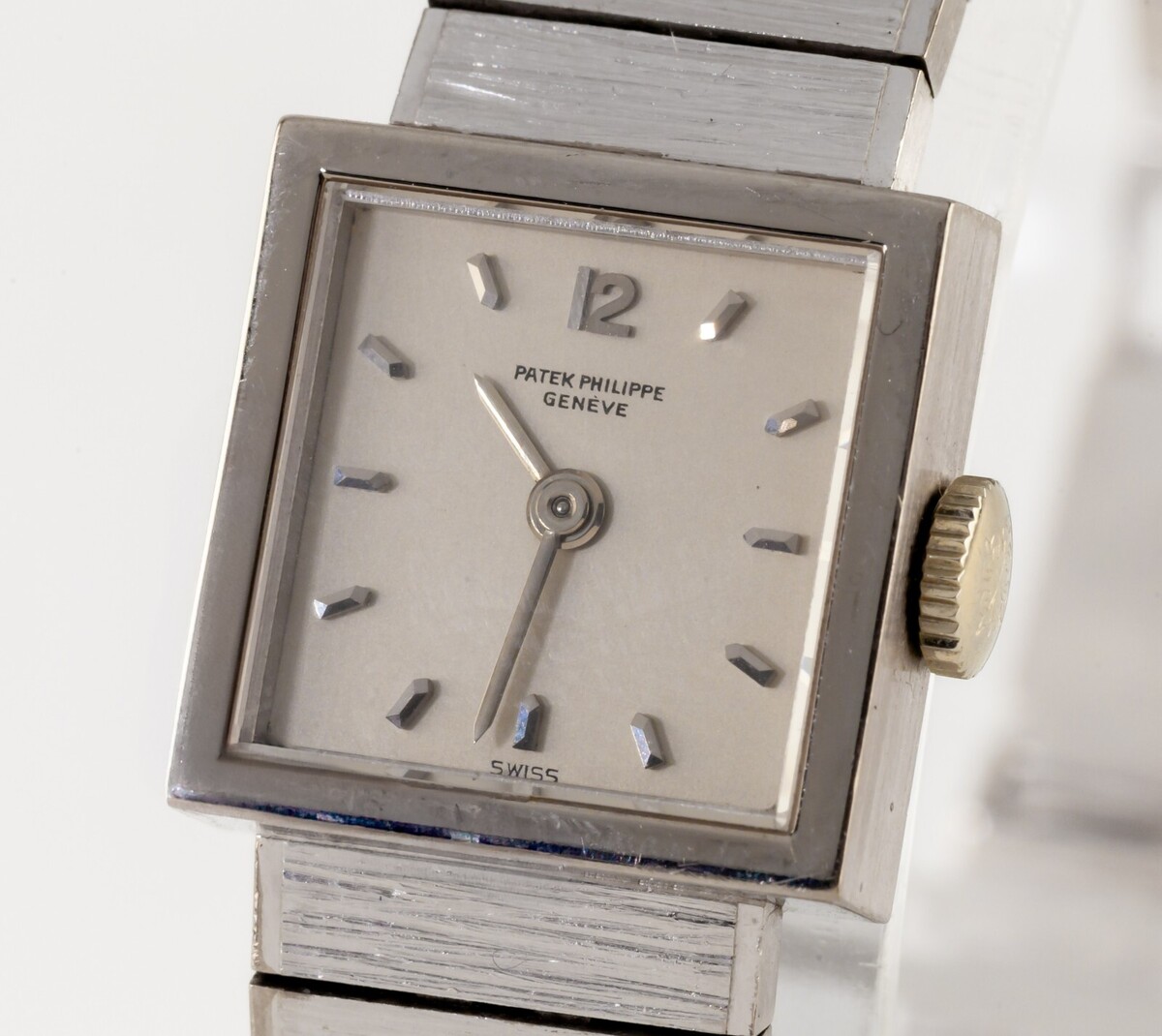 Caja cuadrada en oro blanco de 18 quilates.