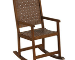 Patio Wood Rocking Chair with PU Seat and Rubber Wood Frame-Brown - Color: Brown