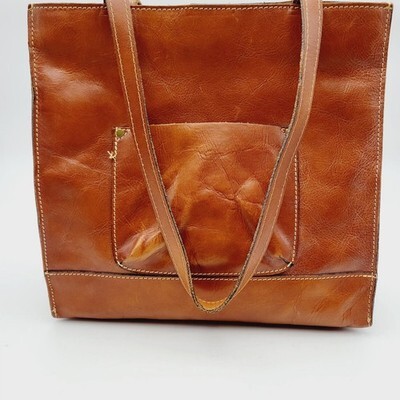 - Patricia Nash Handbag Tote Italian Leather Tooled Medallion Shoulder Rich Brown