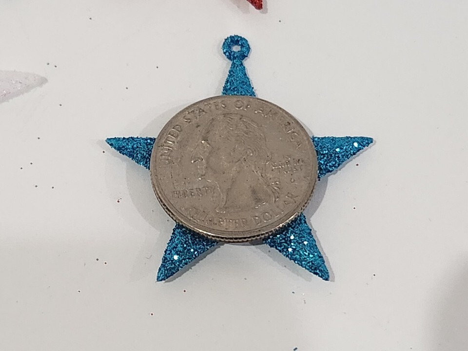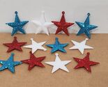 Up for sale are these super adorable plastic MINI glitter star ornaments for your mini 4th of July tree. You will receive a set of (12) ornaments you will receive (4) red (4) blue and (4) white. These are must have for your mini tree and the colors are so pretty. These measure approx 1.75" wide x 1.75" tall (including round hook). These are new never used.