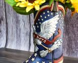 Patriotic Blue Western Stars American Hero Great Seal Eagle Cowboy Boot Vase