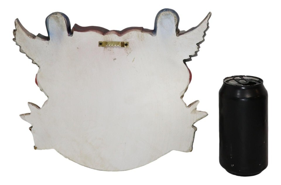 Patriotic Flags Bald Eagle On Cross Crest God Bless USA Wall Plaque Sculpture